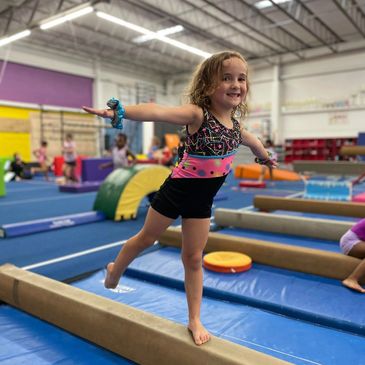 Our teachers guide you through several circuits within each class, teaching you how to safely guide your child through a variety of rolls, climbs, jumps and hangs. Our tots learn to do many of the same skills as their older friends; modified to be developmentally appropriate.